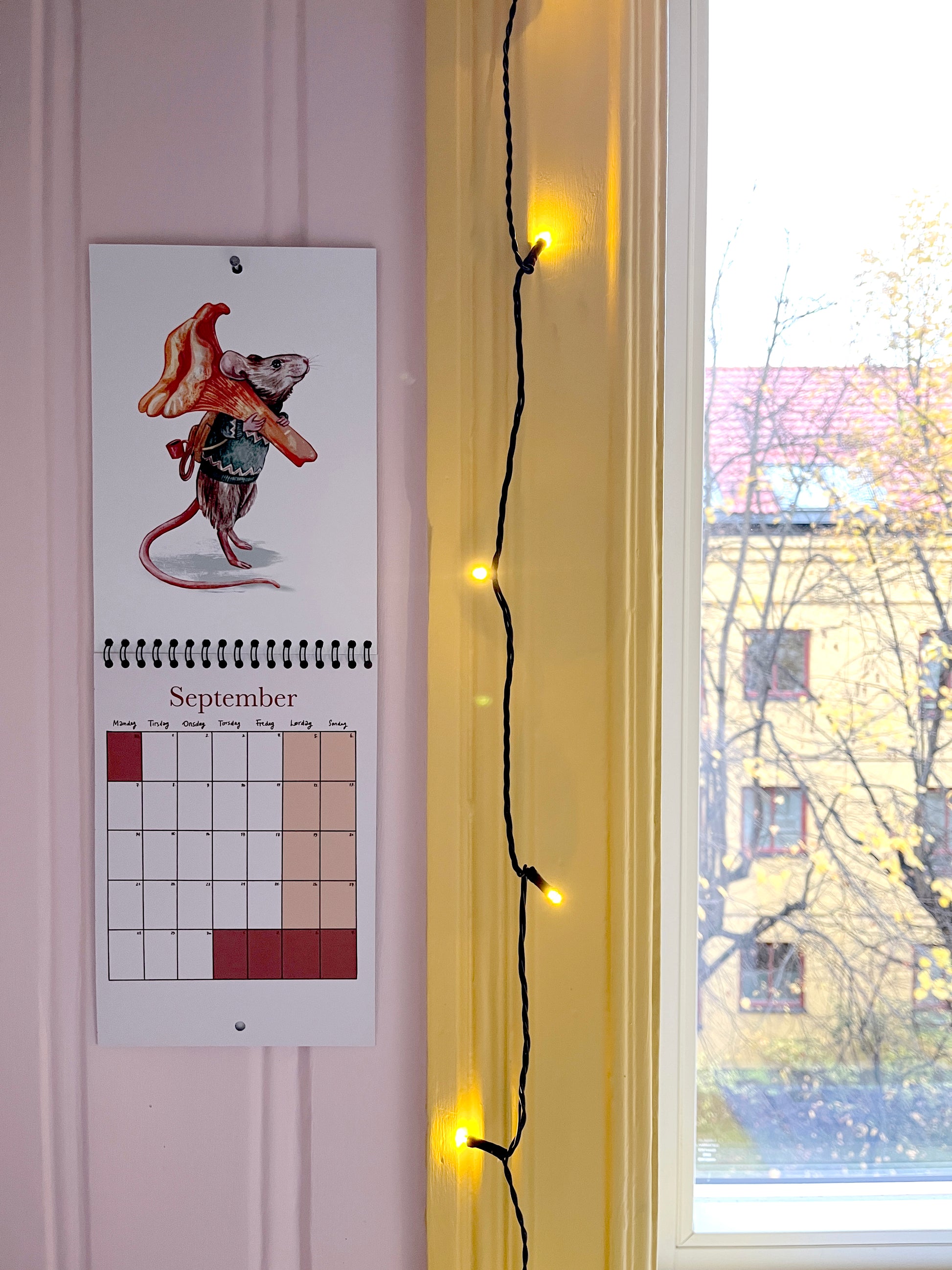 The calendar is printed on A4 double sided matte heavy weight photo-paper at 230 gsm. The boxes for each date are spacious and the matte paper makes it easy to take notes on. Once the year is up you can cut of the binding and reuse or frame your favourite art prints ♡